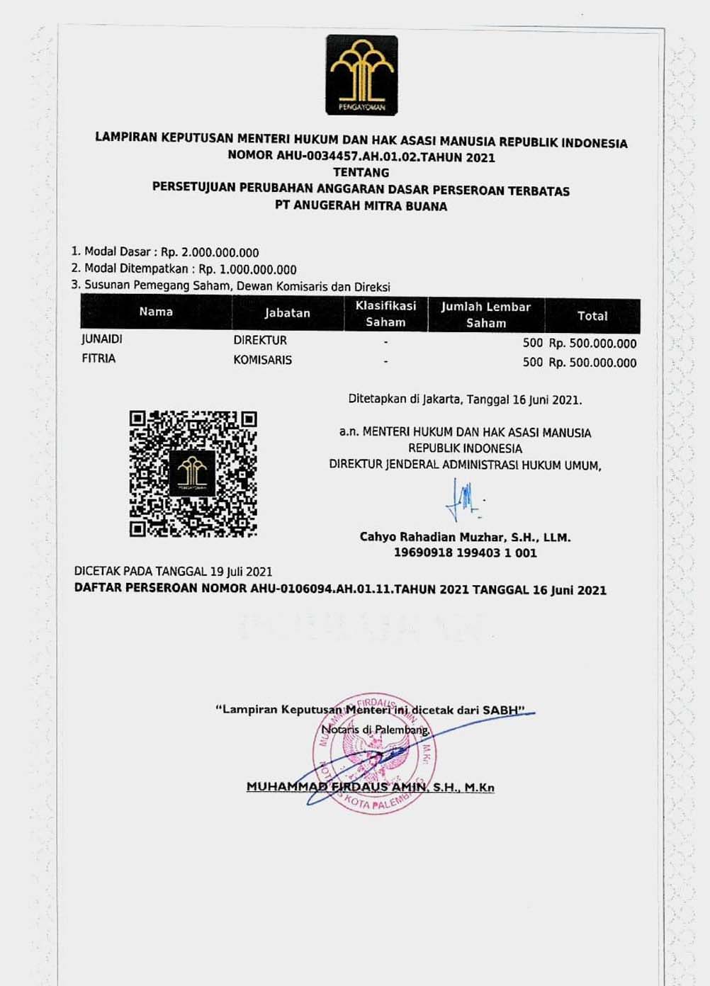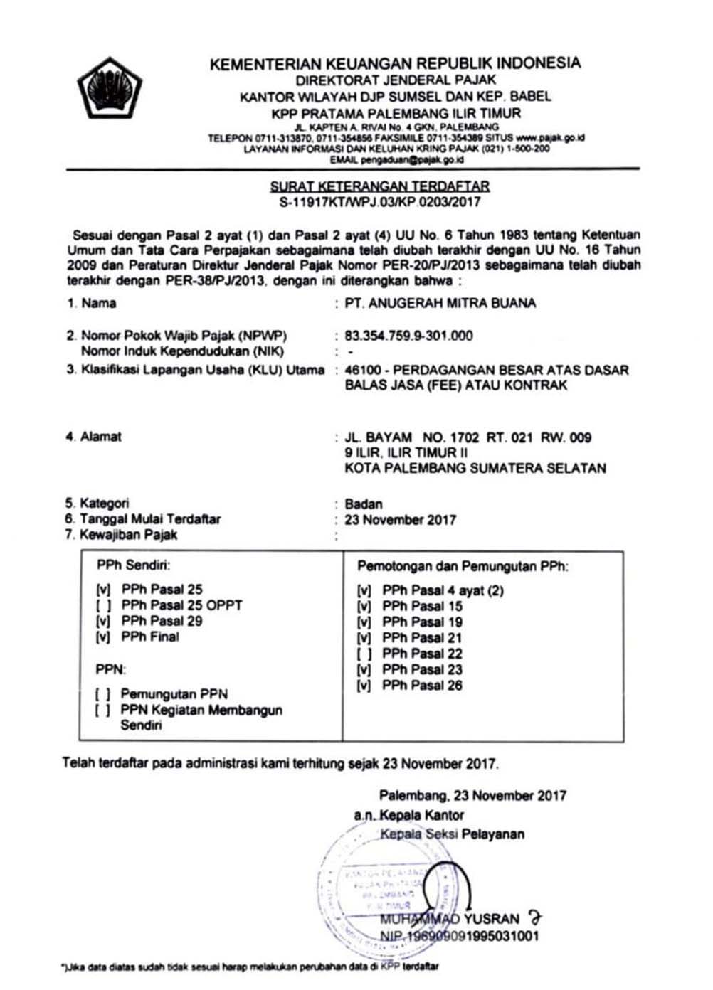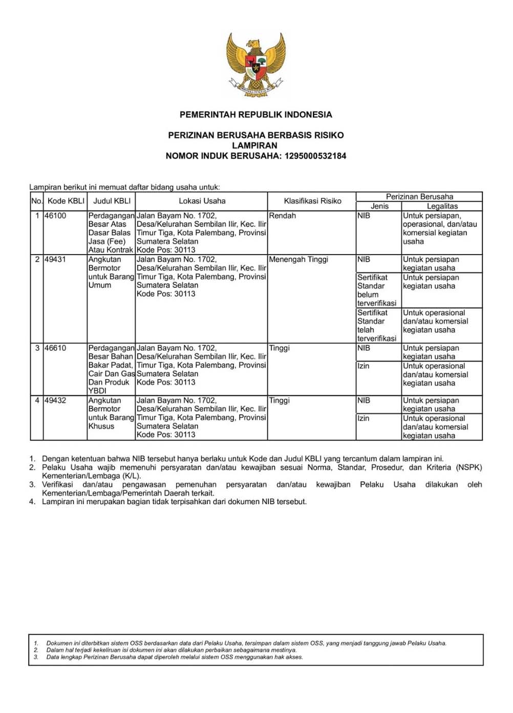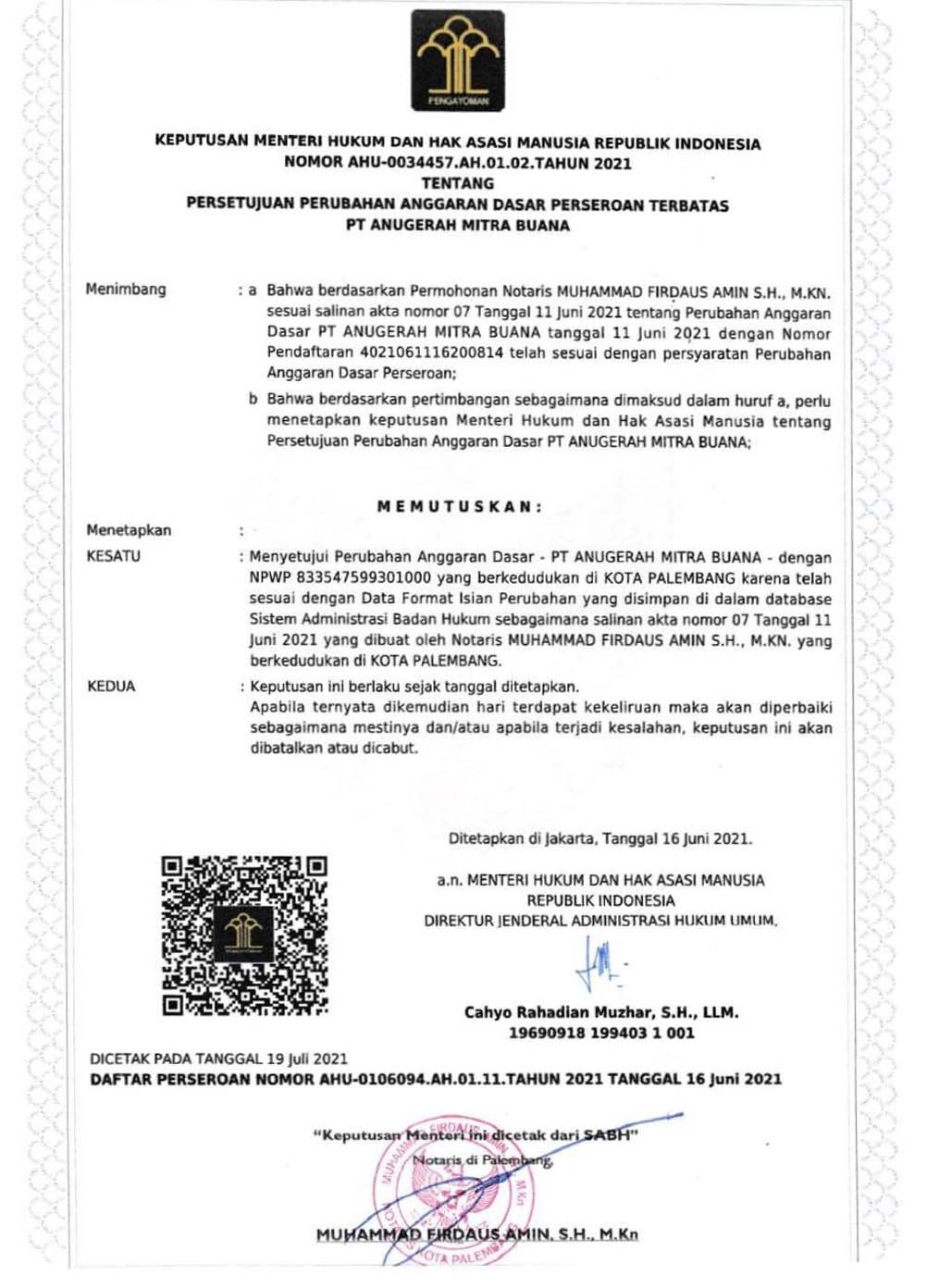 AKTA PENDIRIAN SK MENKUMHAM AKTA PERUBAHAN SK MENKUMHAM NO INDUK BERUSAHA (NIB) SIUP DOMISILI PERUSAHAAN SURAT PENGUKUHAN PENGUSAHA KENA PAJAK SURAT KETERANGAN TERDAFTAR NPWP BADAN
